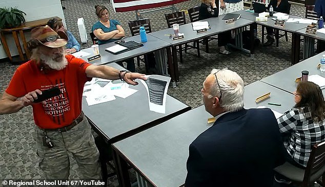 Una reunión de la junta escolar en Maine bajó al caos después de que un miembro de la junta directiva golpeó un teléfono de la mano de un participante durante un intercambio animado.
