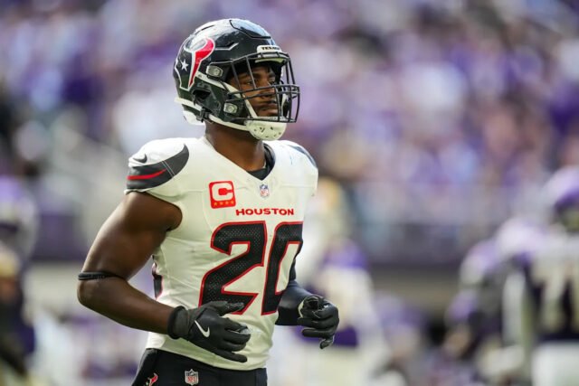 La seguridad de los Texans de Houston, Jimmie Ward (20), no se puede jugar para jugar para el equipo mientras está en la lista de exención del Comisionado. (Foto de Perry Knotts / Getty Images)