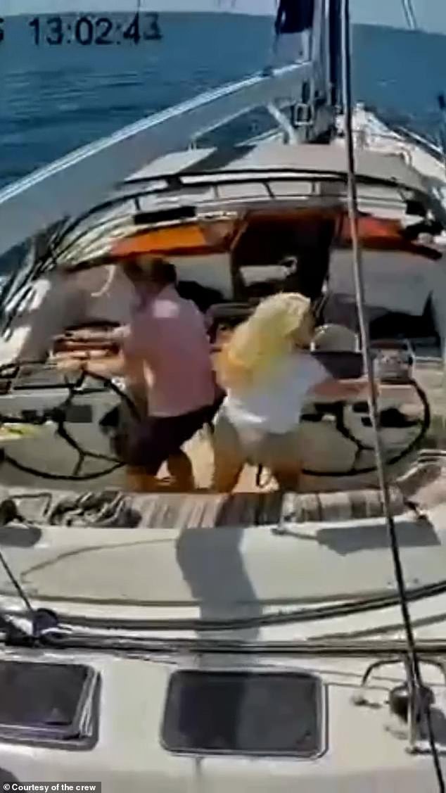 La tripulación podía verse difícil de soportar, y el pánico estalló mientras el yate ha sido golpeado repetidamente. Elise Wurschmidt, a bordo del tiempo, le dijo a The Mail que las Orcas habían empujado contra el piloto automático hasta que “ completamente ” colapsó por la mitad.