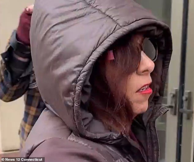 Kimberly Sullivan, de 56 años, fue vista entrando a la corte con un abrigo marrón con la capucha puesta, lo que parecía ser un intento de cubrirse la cara.