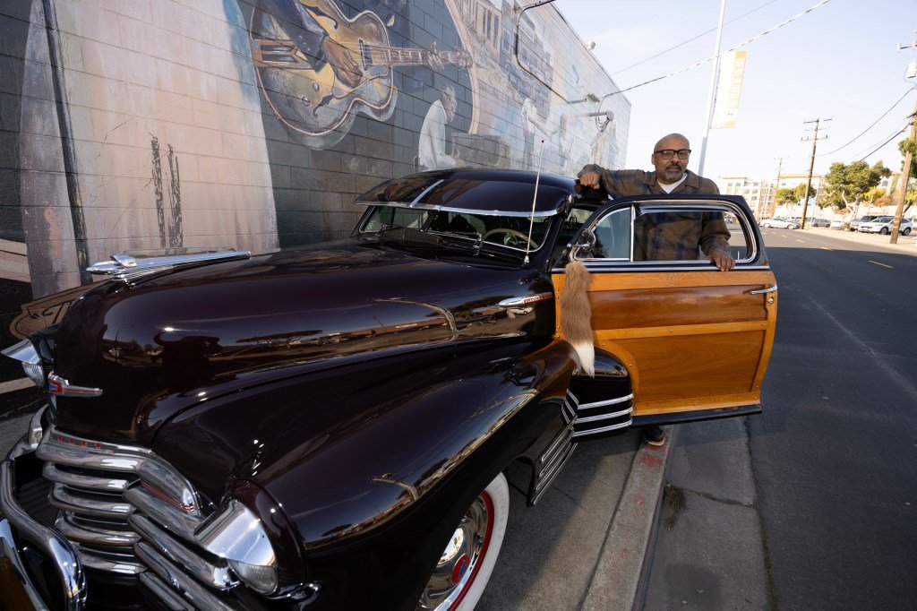 Jermaine Shaffer, entusiasta de los autos de Hayward, recuerda el bache en Hesperian Boulevard que arrojó su Chevrolet Fleetline 1947 al asfalto, rompiendo el guardabarros y el capó de color ónix que él mismo armó.