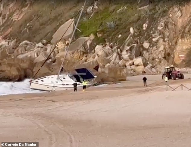 El ataque de la orca tuvo lugar frente a la costa de Nazaré mientras la familia navegaba de Lisboa a Oporto. En la imagen: el barco quedó volcado de costado cuando llegó a la orilla.