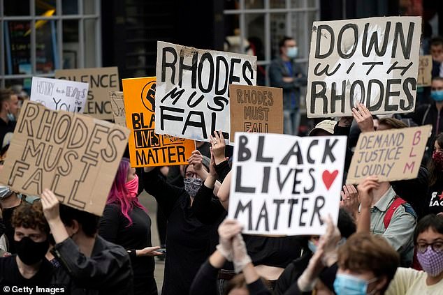 Se ha gastado casi un millón de libras esterlinas del dinero de los contribuyentes en la construcción de un archivo de películas africanas como parte de un proyecto de ‘justicia restaurativa’ (en la foto: estudiantes marchando en una protesta anticolonial de 2020 en Oxford, participando en la investigación)