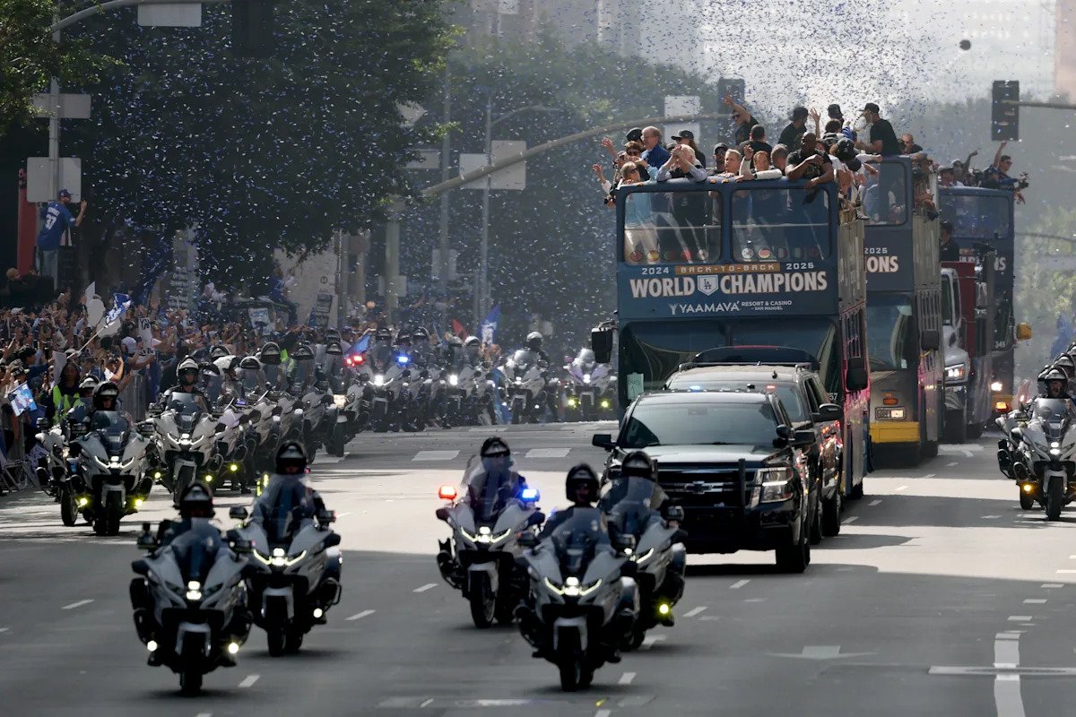 El lunes, los Dodgers pudieron celebrar su campeonato con sus fanáticos. El desfile por el campeonato de los Dodgers llevó al equipo por las calles del centro de Los Ángeles antes de una celebración en el Dodger Stadium.