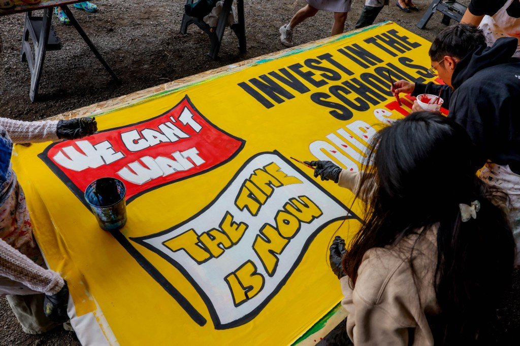 El sindicato ha compilado una lista de bancos de alimentos locales para ayudar a las familias que dependen de las comidas escolares a mantenerse alimentadas, dijo Ortiz. Los miembros del sindicato también están trabajando en posibles asociaciones con grupos comunitarios para ayudar a brindar servicios durante una huelga, pero no pudieron brindar detalles durante la reunión pública.