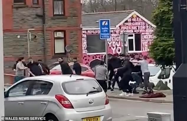 Gobir dijo que tres autos estaban siendo conducidos desde Newbridge a Blackwood y estacionados en la calle principal cuando comenzó la violencia a media tarde.