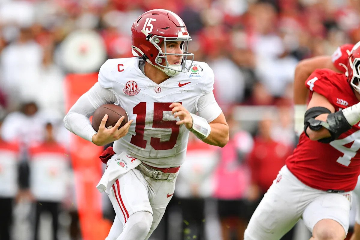 Ty Simpson se convirtió en titular del Alabama Crimson Tide en su cuarta temporada universitaria. (Foto de Brian Rothmuller/Icon Sportswire vía Getty Images)