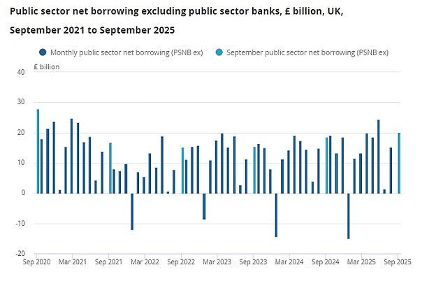 Rachel Reeves recibió más malas noticias hoy, ya que el endeudamiento del gobierno alcanzó un nuevo récord en septiembre no relacionado con Covid