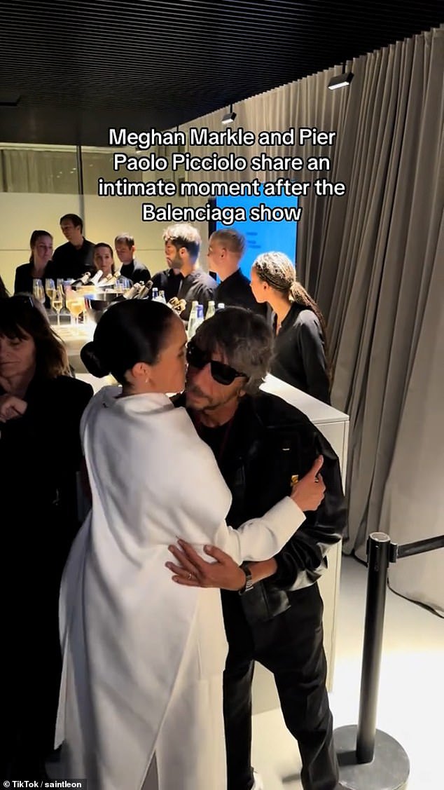 Meghan Markle compartió un beso torpe con el diseñador de moda italiano Pier Paolo Piccioli mientras hacía una aparición sorpresa en la Semana de la Moda de París.