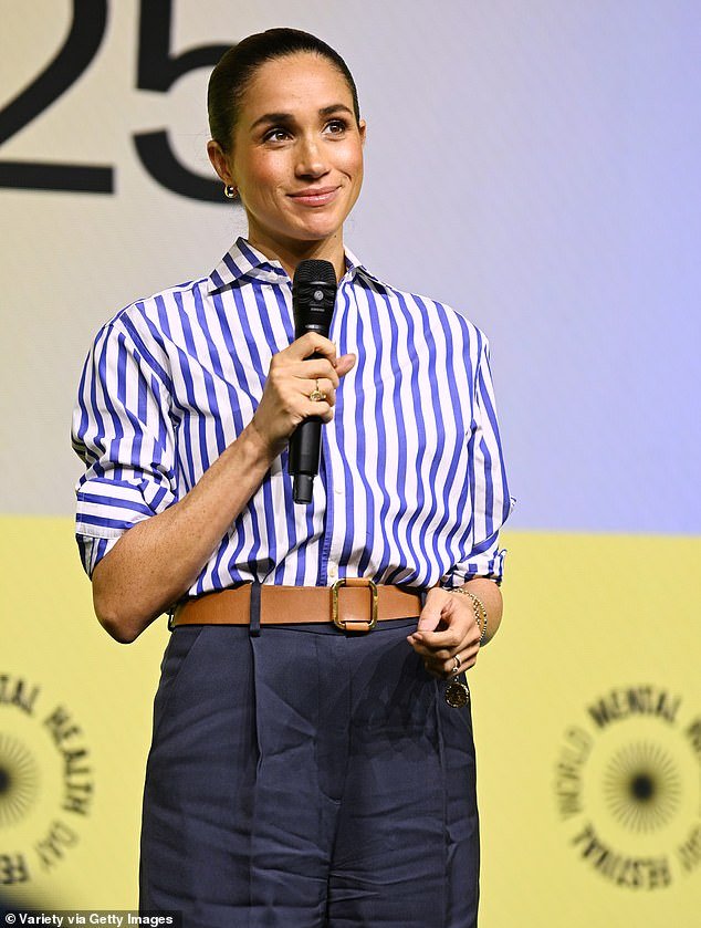 Meghan Markle subió al escenario en un festival del Día Mundial de la Salud Mental en Nueva York pocas horas después de que ella y el Príncipe Harry fueran coronados ‘Humanitarios del Año’.
