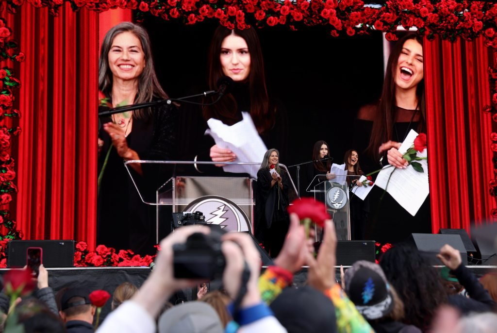 En una multitud llena de teñido anudado y flores, miles de personas se reunieron el sábado bajo los brillantes cielos azules del Área de la Bahía, aplaudiendo, tocando panderetas y cantando “sabes que mi amor no se desvanecerá” en honor al fallecido guitarrista y cantante de Grateful Dead, Bob Weir.