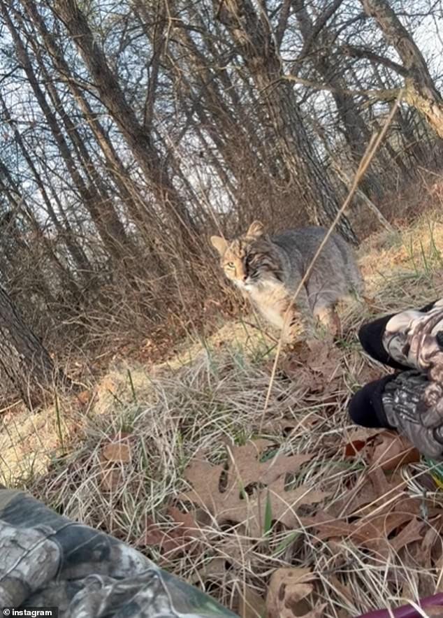 Para evitar asustar a los pavos, usó su teléfono para mirar detrás de él, solo para encontrar un pequeño gato montés acercándose a él.
