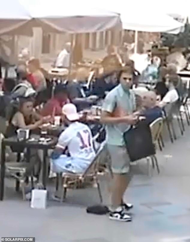 El Crook se mezcló entre otros turistas antes de caminar hacia una mesa de terraza en la barra donde tres amigos estaban charlando.