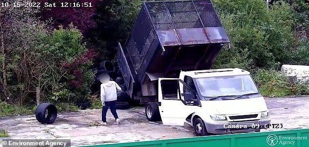 Las imágenes muestran a los hombres irrumpiendo en un terreno privado vallado y descargando camiones cargados con una variedad de basura.