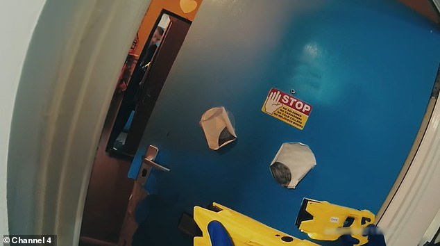 Imágenes increíbles muestran que un equipo de intervención de la policía de Bedfordshire irrumpió en un apartamento en Luton después de que se escucharon disparos el 13 de septiembre del año pasado.