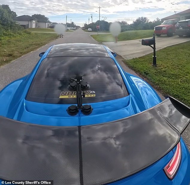Las imágenes mostraban a Cruz conduciendo por una calle residencial en un auto deportivo azul eléctrico.