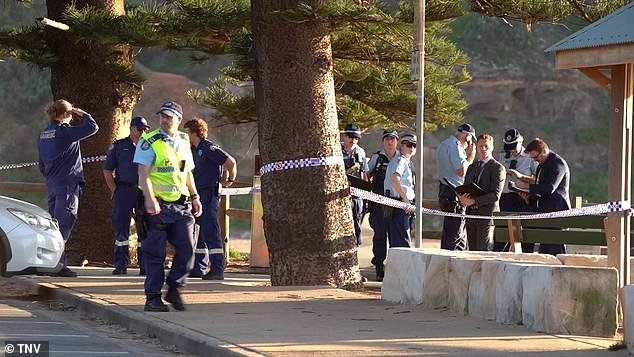 La policía y los investigadores llegaron al lugar el jueves por la mañana y acordonaron parte de la playa de Mona Vale con cinta policial.