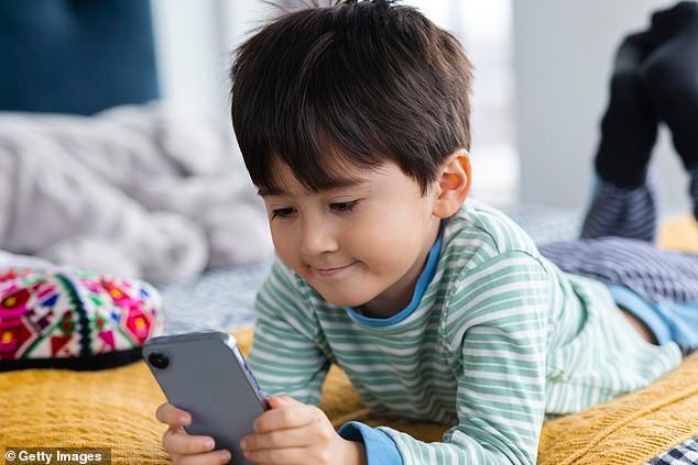 El foro para padres presentó un teléfono inteligente de £ 279 especialmente diseñado para priorizar la seguridad de los niños y tranquilizar a los padres (en la foto: foto de un niño usando un teléfono inteligente)