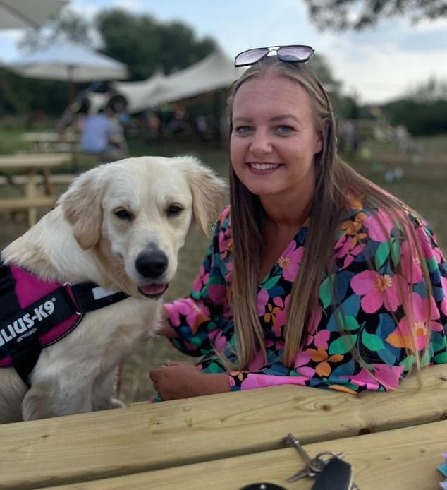 Emma Sacerdote, de 36 años, de Stratford, en Avon, trajo un centavo a la casa en septiembre pasado como perro de terapia para sus dos hijos discapacitados.