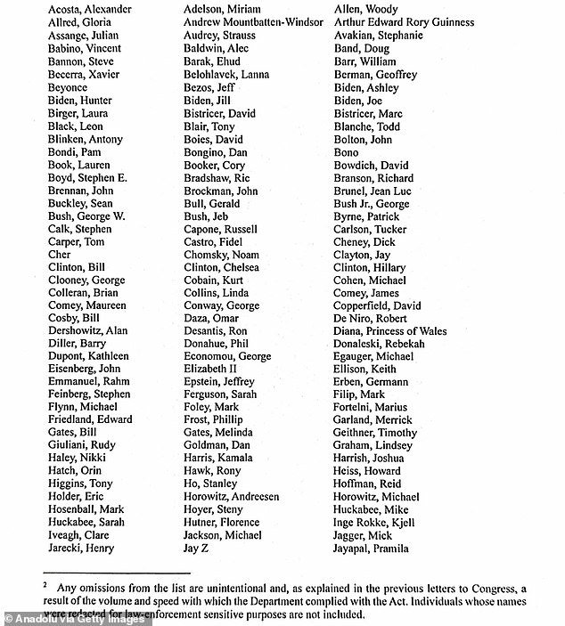 Diana Ross, Melinda Gates, Tucker Carlson, Beyoncé y Meghan Markle también aparecen en la lista finalizada y exhaustiva de Bondi de todas las celebridades nombradas en los archivos.