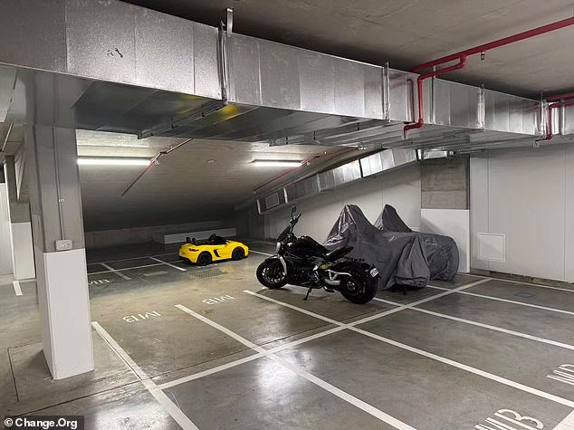 Una madre furiosa libró una guerra después de que se le dijo que no se le permitió mantener el auto compacto de su hijo en el estacionamiento de su complejo de apartamentos boutique.