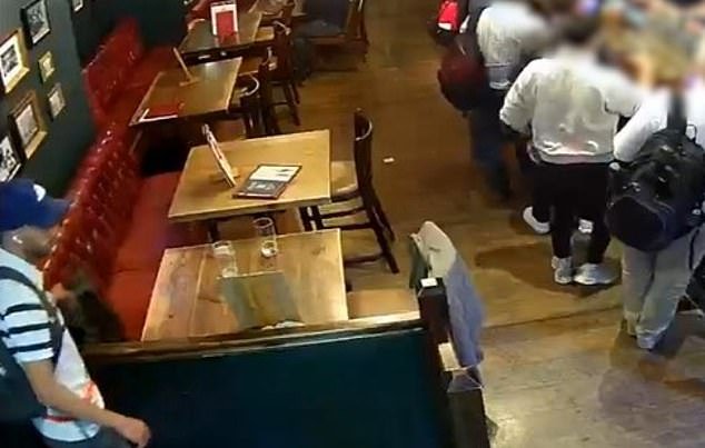 Se ve a Abderaouf pase frente a la bolsa en el pub de Londres antes de finalmente volar la mochila