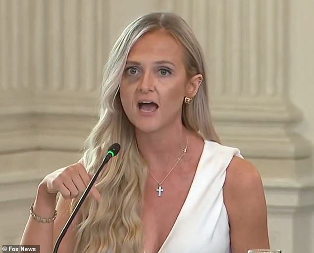 Katie Daviscourt (en la foto) compartió su apasionado testimonio el miércoles durante la mesa redonda de Donald Trump centrada en la violencia de Antifa.