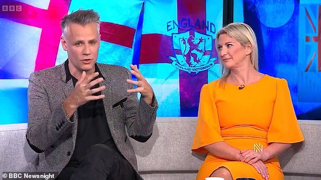 Richard Bacon (izquierda) habló sobre las banderas Union Jack durante una aparición en Newsnight de la BBC, junto con el ex eurodiputado del Partido Brexit, Alex Phillips (derecha).