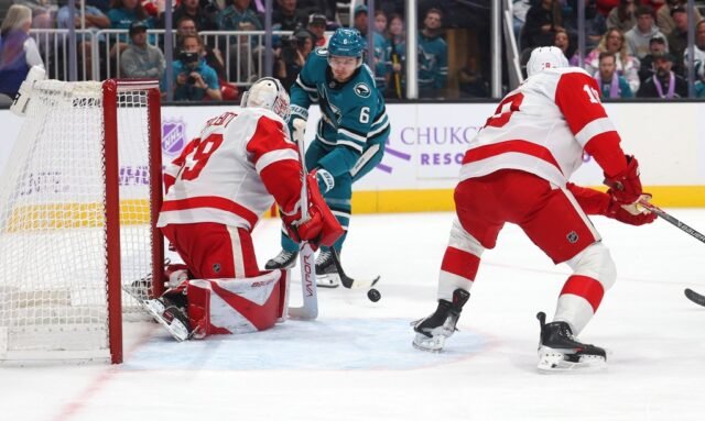 Los Sharks solo lograron nueve tiros sobre Talbot en los dos primeros períodos, mientras que Detroit hizo un buen trabajo sofocando a los patinadores de San José, quitándoles tiempo y espacio.