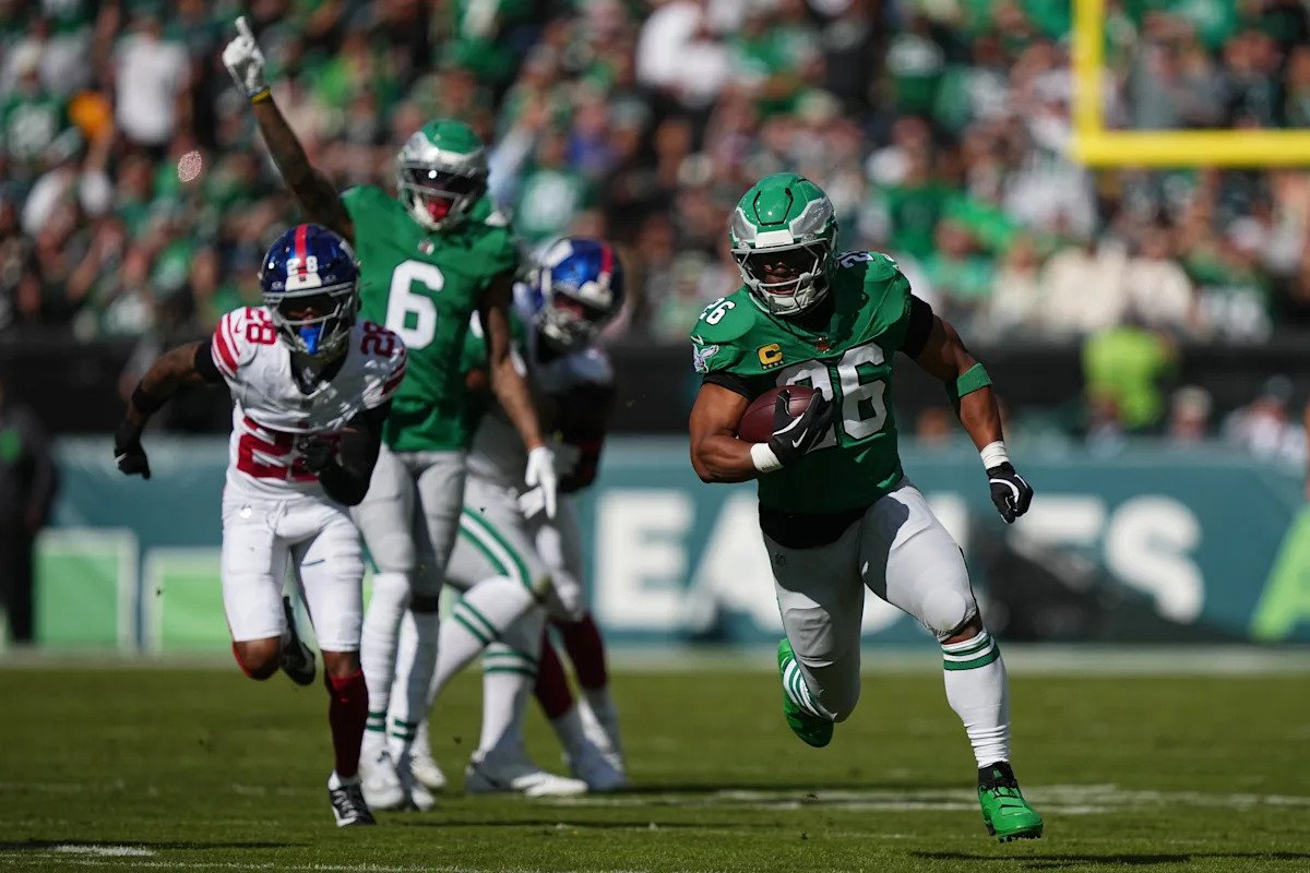 El corredor de los Eagles y ex Gigante quedó reprimido esta temporada luego de una campaña de debut para Filadelfia en 2024 que ganó el premio al Jugador Ofensivo del Año. El domingo quedó libre por primera vez esta temporada contra su ex equipo.