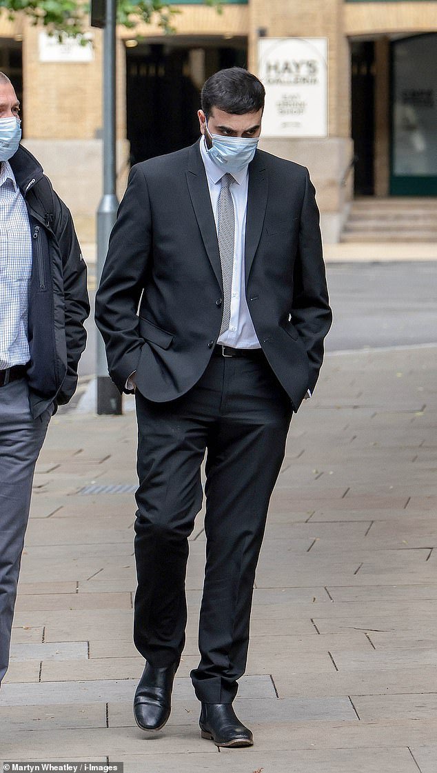 PC Mahmood en la foto de Southwark Crown Court el año pasado antes de ser declarado no culpable de haber infligido ilegalmente lesiones corporales graves en Jordan Walker-Brown