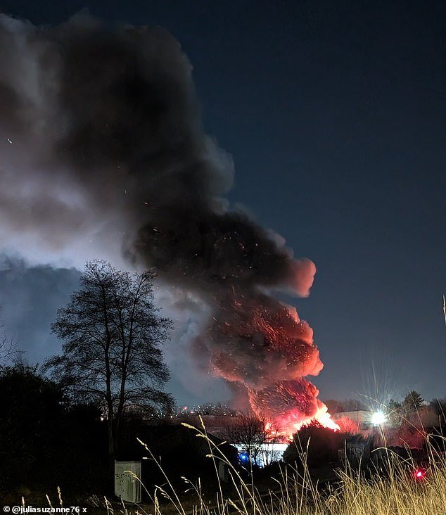 Los equipos de bomberos se apresuraron a llegar a la unidad industrial en Meadowhall Road alrededor de las 5:45 p.m. y fueron recibidos por llamas y humo que se elevaban hacia el cielo nocturno.