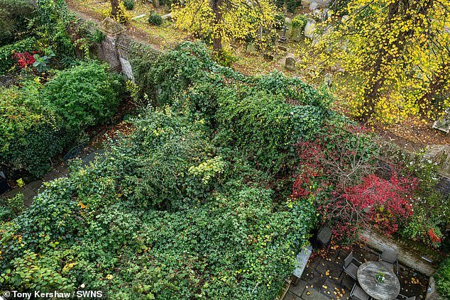 La maleza, que no se ha tocado durante más de una década, ahora crece 10 pies de altura sobre la pared trasera y en los jardines de los vecinos.