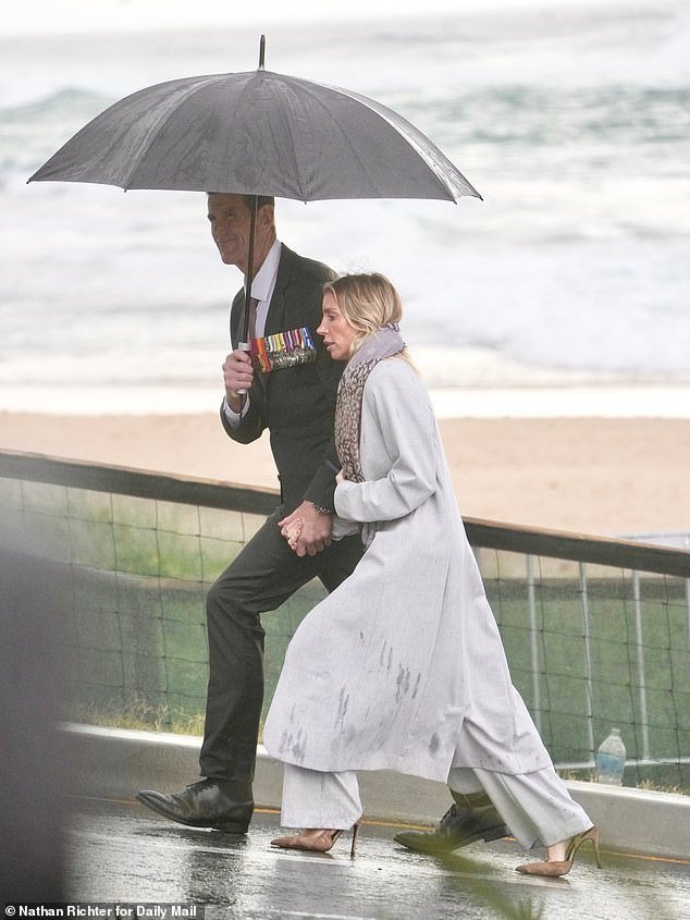 Roberts-Smith y miles de personas más desafiaron el clima frío y húmedo para el servicio al amanecer en Currumbin Beach