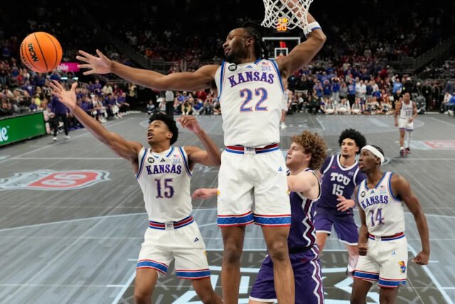 Kansas puede lanzar varios guardias largos e intercambiables a Daniels Jr., comenzando con Melvin Council Jr., haciendo la vida mucho más difícil en el juego de pick-and-roll en el que confía Cal Baptist. Cuando se combina eso con la ventaja de tamaño de Kansas sobre el resto del campo, se vuelve difícil ver a los Lancers generando miradas efectivas de manera consistente.
