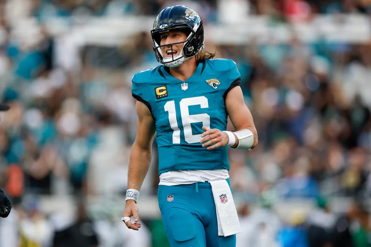 Consideremos que ha superado su proyección del Fantasy en nueve de sus últimos 10 partidos. Ha lanzado múltiples pases de touchdown en cuatro juegos consecutivos y es un jugador bastante consistente. Y ahora que los Jaguars tienen la ofensiva que desean (Jakobi Meyers se está adaptando bien, Brian Thomas Jr. está sano y produce nuevamente, Parker Washington también se ha recuperado), Lawrence está listo para extender sus alas. Quizás le llevó algún tiempo aclimatarse a un nuevo esquema ofensivo. Sin embargo, no ofrecen juegos de 40 puntos en el aeropuerto. Tenías que sorprenderte un poco al ver a los Jags irse en este punto.