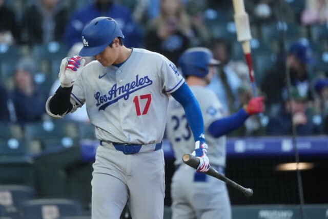 Ohtani comenzó el juego del sábado cometiendo un error (que no contó para la racha), aterrizando en primera base, volando hacia el jardín izquierdo y cometiendo un error de interferencia sobre el receptor de los Rockies, Hunter Goodman, en sus cuatro apariciones anteriores en el plato.