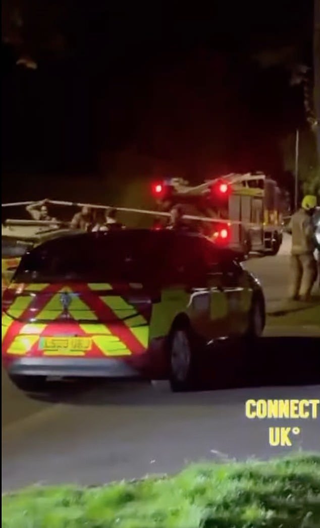 Las imágenes de vídeo muestran las luces azules parpadeantes de los coches de policía que bloquean la carretera en el lugar, con los bomberos también presentes.