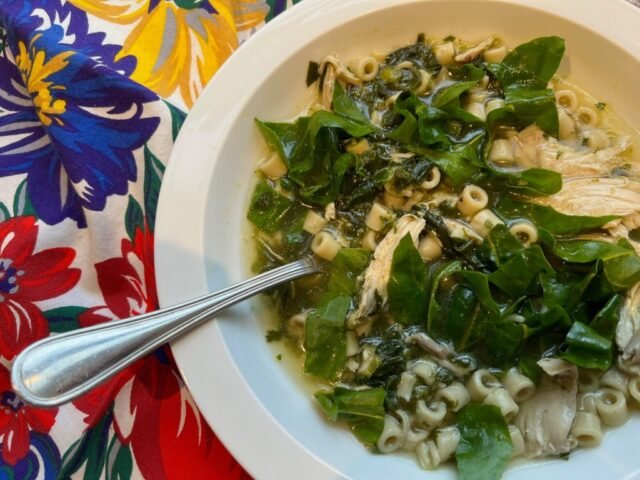 Después de probar en vano todos los medicamentos contra la gripe de venta libre para mi marido, me encontré con una receta que parecía la perfecta para combatir la gripe: sopa de fideos con jengibre y verduras de Alison Roman, autora del libro de cocina “Something From Nothing”. Esto ayudó; él es mejor.