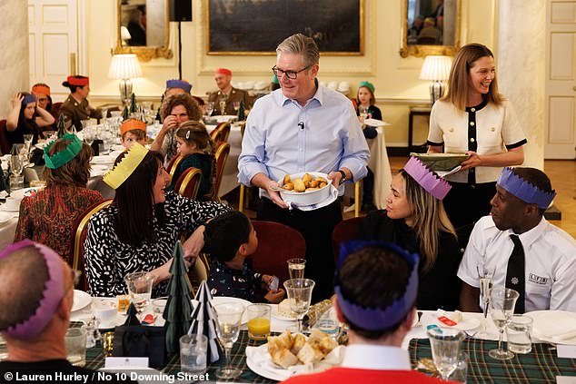 Después de un año caótico y con la creciente amenaza de un golpe laborista, el Primer Ministro aprovechó su discurso festivo para insistir en que su “prioridad” es hacer la vida más fácil en Gran Bretaña (en la foto, organizando una recepción para los trabajadores de primera línea del servicio público en el número 10 esta semana).
