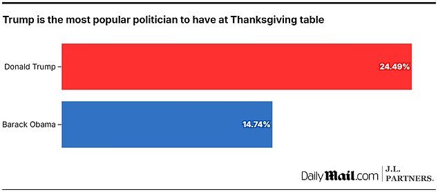 Los datos de las encuestas del Daily Mail y JL Partners muestran que los estadounidenses preferirían tener a Trump que a Barack Obama en su mesa de Acción de Gracias.