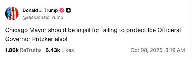 La apelación incendiaria de Trump intervino en un artículo en Social Truth el miércoles por la mañana después de que Pritzker dijo que el presidente desplegó tropas en Chicago porque sufría de “demencia”.