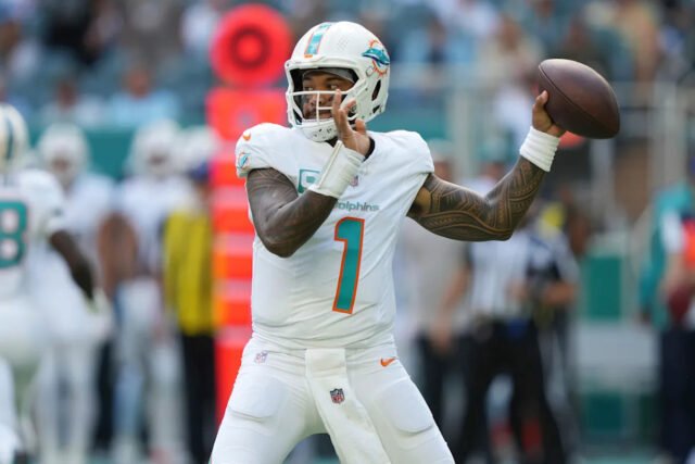 Tagovailoa solo ha jugado una serie completa de partidos de temporada regular una vez en sus seis temporadas de carrera. Eso fue en 2023, cuando lanzó para 4,624 yardas, la mayor cantidad de la liga, y llegó a su único Pro Bowl.