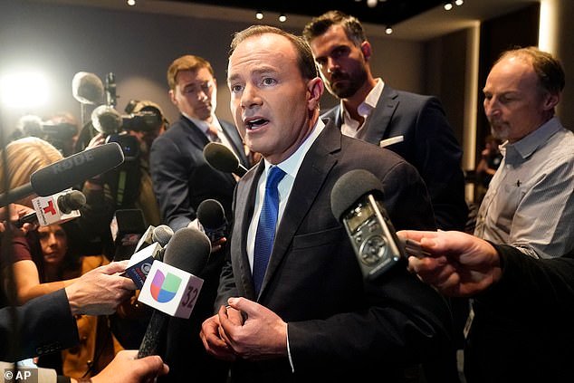El republicano de Utah Mike Lee habla con los periodistas en 2022 en Salt Lake City