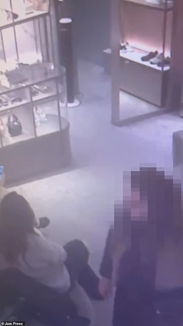 Las imágenes de CCTV muestran al ladrón, que parecía un comprador normal, mirando a su alrededor para ver quién la estaba mirando antes de aprovechar la oportunidad para robar el bolso.