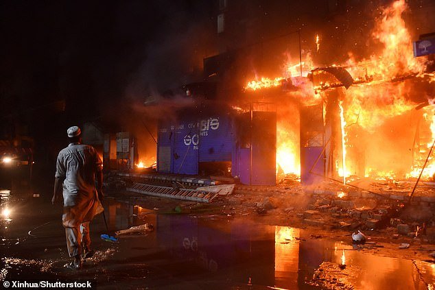 Cientos de personas se habían reunido alrededor del edificio, incluidos dueños de tiendas angustiados cuyos negocios fueron incendiados.