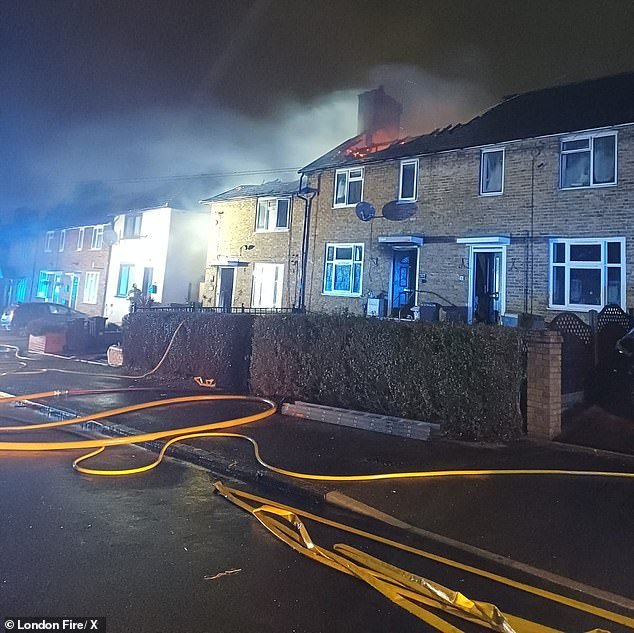 Las imágenes del lugar muestran la casa en ruinas, con humo saliendo de un gran agujero en la parte superior de la propiedad y brasas rojas aún ardiendo.