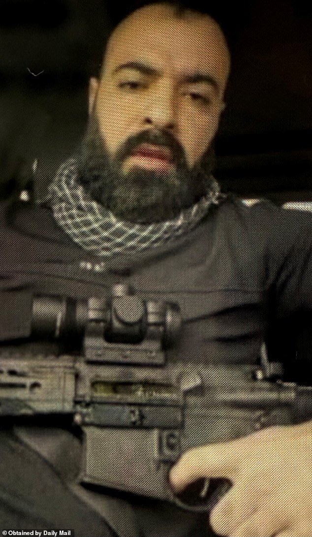 El Daily Mail ahora puede compartir exclusivamente una captura de pantalla del video del sospechoso de rostro severo, filmado afuera del Templo de Israel, luciendo una keffiyeh alrededor del cuello y con el dedo en el gatillo de un arma poderosa.