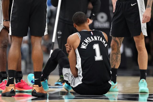 Wembanyama abandonó el campo para regresar al vestuario de los Spurs a principios del segundo cuarto, luego de una colisión con el delantero de los 76ers, Paul George, que lo dejó lento para levantarse y aparentemente favoreció su hombro izquierdo. Sin embargo, regresaría a la banca poco después y regresaría al juego con 5:33 restantes en la primera mitad, luchando con el pívot estrella de Filadelfia, Joel Embiid, durante los siguientes minutos.