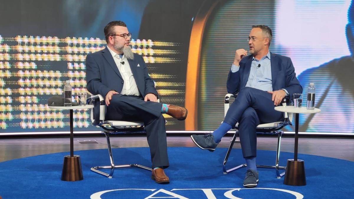 El abogado de ‘Knockout’ Dan Alban (izquierda) habla sobre ‘Cuando los policías se convierten en ladrones’ con Clark Neily en el estreno de la película. Emilia Alba